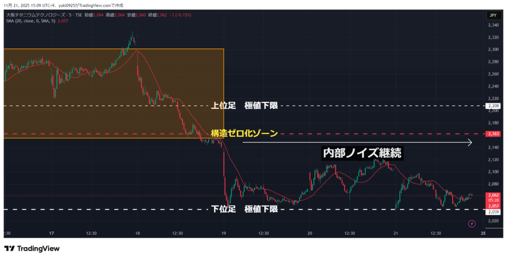 • 下降独立波 → 内部ノイズ反発 → 再び弱い戻り