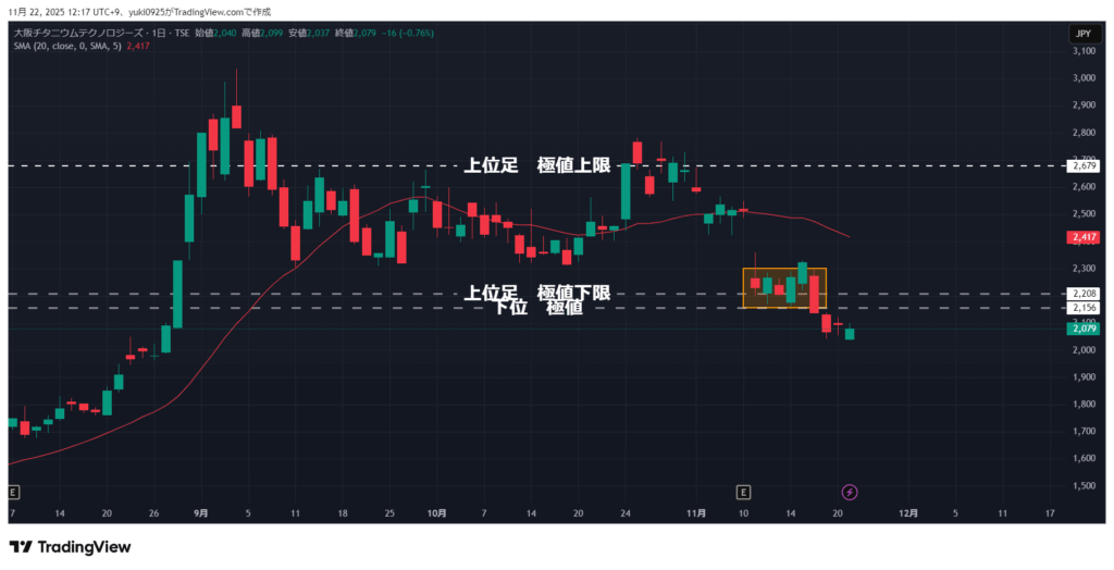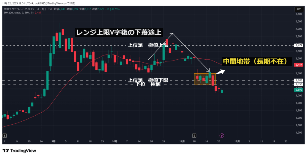 日足構造は「レンジ上限からのV字下落」の途中で、