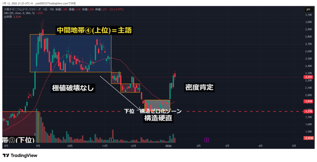 - 本局面で扱えるのは「構造の状態」だけであり、価格目標は置かない。