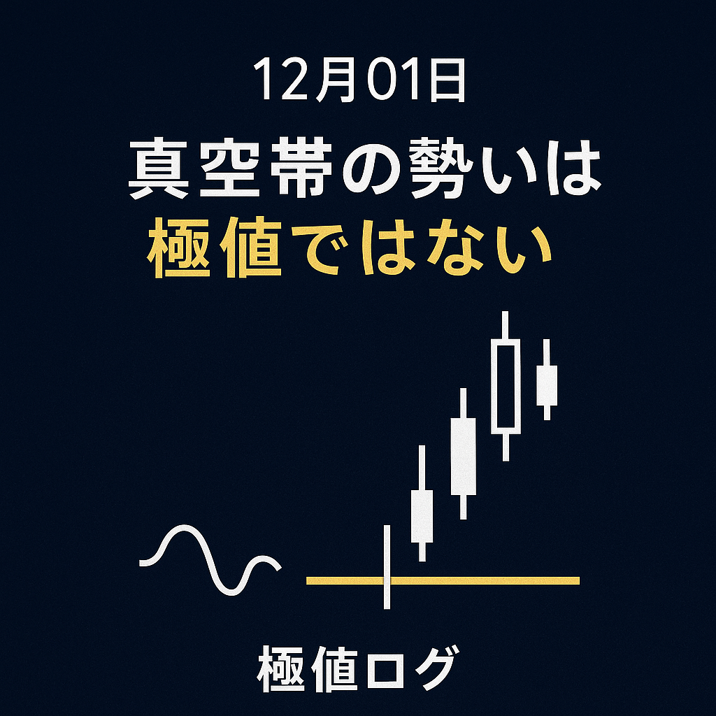 【■ 再現条件(前日の前提)】 ■ 極値構造(昨日) 第一撃はすでに成立しており、下降方向の支配は明確に維持されていた。 昨日の上昇は「押し目の戻し」ではなく、 真空帯を通過したことで発生した短期的な急伸であり、 調整としての質が不十分だった。...