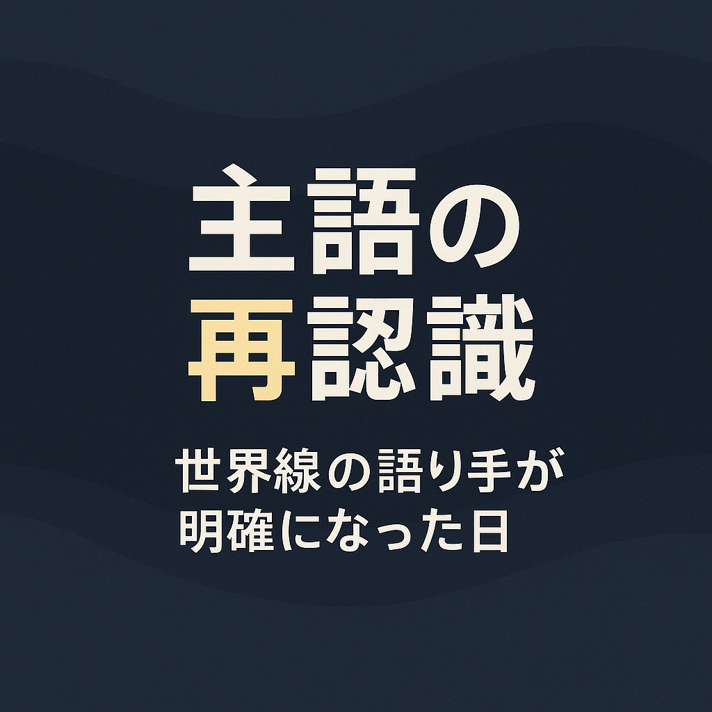 【■ 結論】 主語とは「今の世界線の語り手」である。どの世界線が現在の文脈を支配しているかを示す“視点の固定点”。 【■ なぜ重要なのか】 世界線のズレを防ぐ軸になる 主語が曖昧なまま分析すると、 極値・破壊・第二撃の全てが誤判定になる。 中間地... -