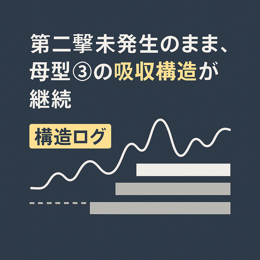 【】 結論から言うと、 世界線は一度も“方向生成の資格”を得なかった。破壊も肯定も不成立。ただひたすら吸収され続けた1週間。 つまり 母型③「破壊しない → 中間地帯へ吸収 → 停滞」の完全再現。 しかも面倒くさいことに、この“停滞”が 日足レベルでも5分... -