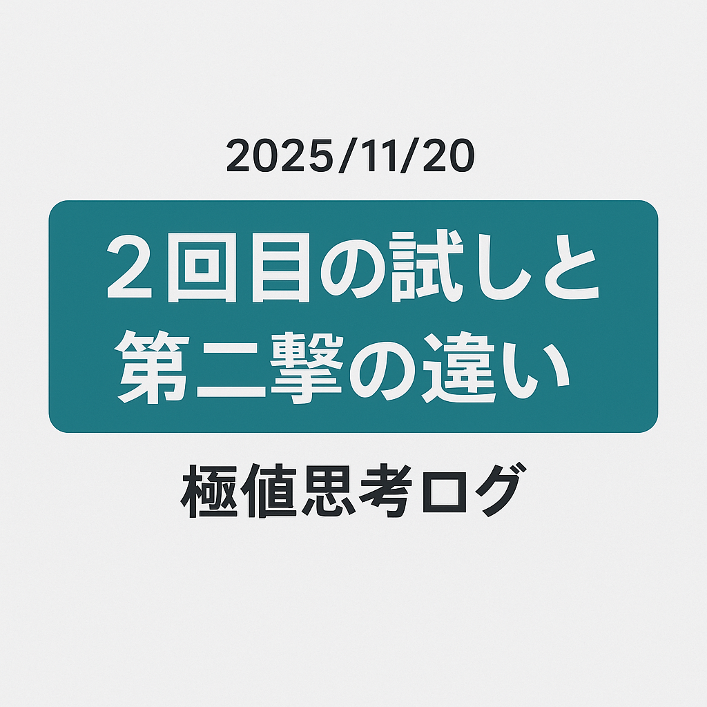 【結論(思考の核)】 2回目の試しは「形の再試し」。第二撃は「その形の内部で働く力学」。同じ現象に見えても、本質はまったく別物。 【2回目の試しとは何か(形の定義)】 2回目の試しは、チャート上に視覚的に現れる「再試しの動作」を指す。 安値(ま...