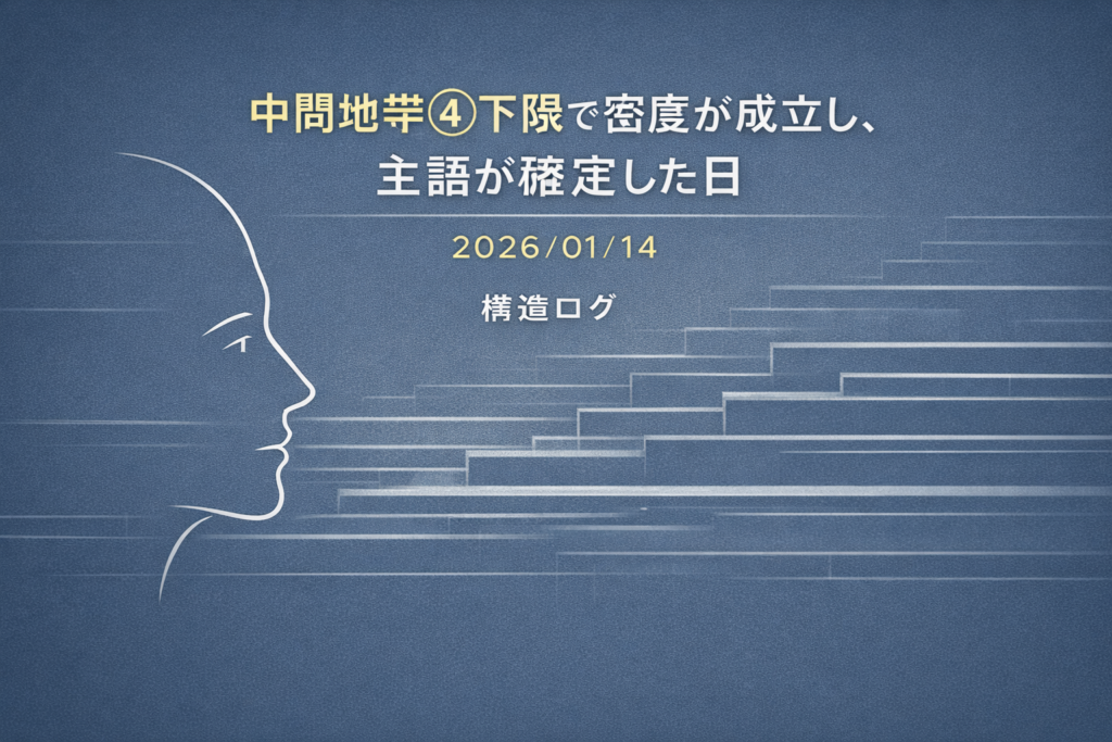1) 前提定義 本ログは構造・極値とは無関係に発生した思考の揺れを、行動に接続させないための隔離記録とする。 心理ノイズは 発生してよい ただし判断材料にしてはならない 本日の焦点は「主語の概念が言語上でズレることによって生じたノイズ」。 2) ノ...