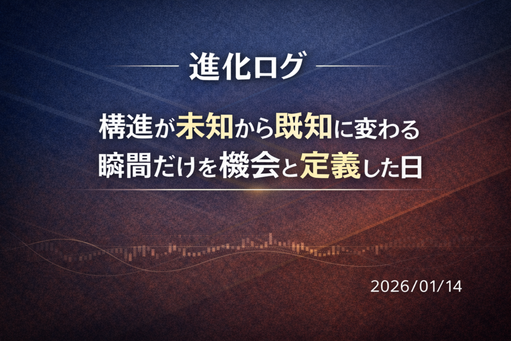 ■ 進化ログ 本日、大きな上昇を確認したことで「過去にもっと買えばよかった」という後悔の感情が発生したこの感情自体は、人間として自然な反応であると受理する 感情の内容を分解した結果、後悔の正体は構造が未成立だった局面を、成立していた前提で遡... 進化ログ